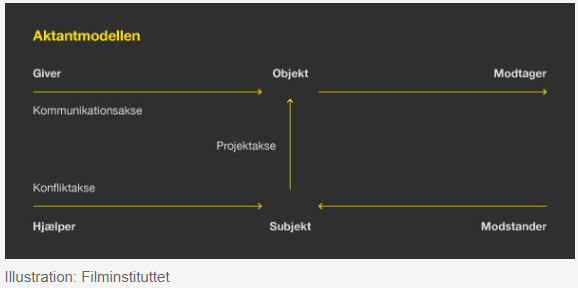 Ordet “aktant” kommer fra latin, hvor “actus” betyder handling. En aktant er én, der handler. Aktantmodellen er en model, hvor vi får overblik over, hvem der handler i historien.